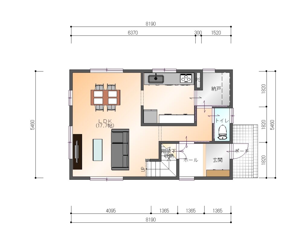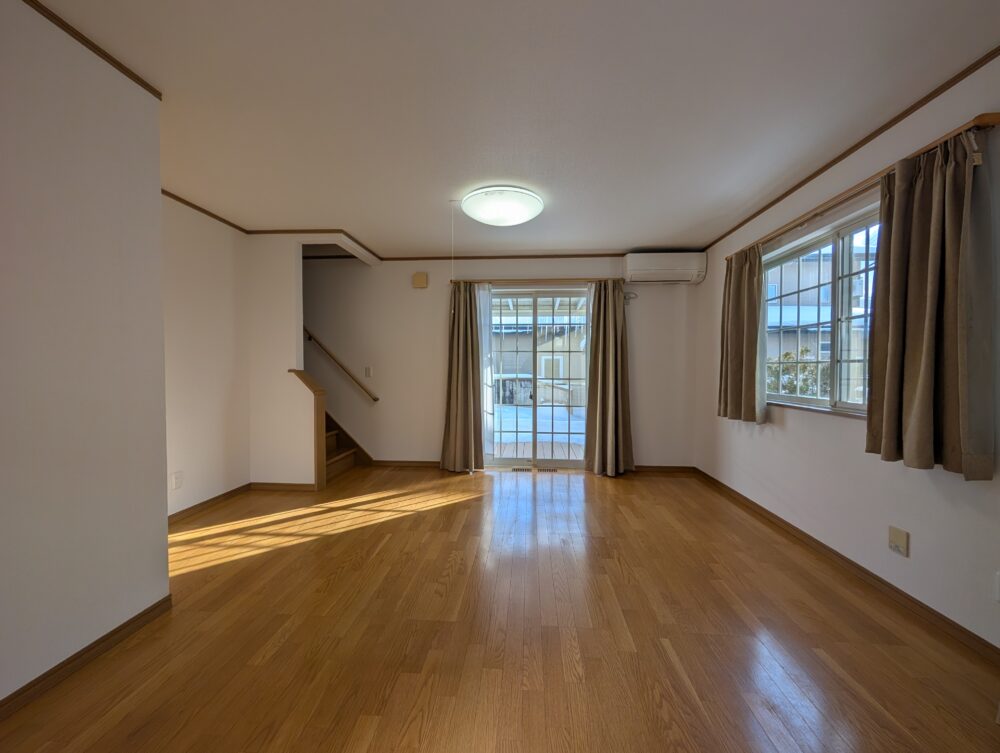 • リビング 南向きの窓から光が差し込む明るいLDK。階段付きで家族の動線も見渡しやすく、快適性も◎。